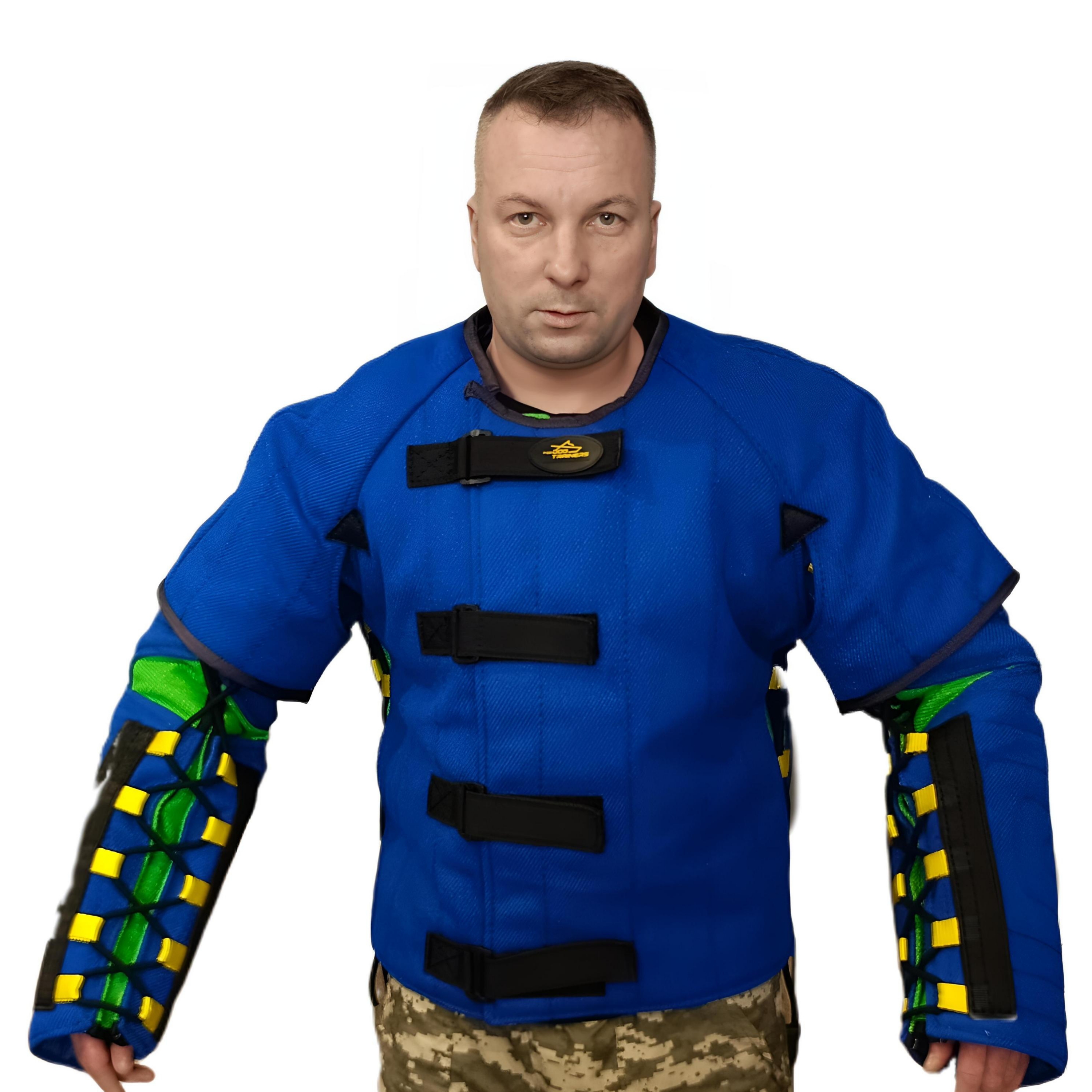Куртка скрытой защиты "HIDDEN" - это свежая модель от Fordogtrainers, созданная для профессиональной подготовки полицейских, военных и служебных собак. Скрытая защита надевается как под легкий ринговый костюм, так и под повседневную одежду, не показывая собаке, и создавая, тем самым, максимально реалистичную ситуацию на тренировах. Таким образом, куртка скрытой защиты снимает у собаки стереотип, выработаный в ходе работы с дрессировочными костюмами и рукавами, развивает уверенность собаки при работе в реальной обстановке. Во время дрессировки на атаку и задержание дополнительно используйте скрытый рукав и избегайте прямых укусов собаки, так как скрытый костюм не дает 100% защиты. Собака должна работать в скрытый рукав. Костюм "HIDDEN" выполнен из прочного безопасного материала и состоит из куртки, штанов, рукавов, щитков на ноги и защиты подмышек. Каждый элемент съемный и может использоваться отдельно. Куртка, штаны и рукава регулируются по ширине специальными шнуровками. Штаны имеют подтяжики на быстросъемных пряжках, щитки ниже колена фиксируются при помощи засежек из контактной ленты, липучки. Размер костюма универсальный, регулируется ремнями, шнуровками и застежками-липучками, подходит на рост от 175 см до 185 см. Костюм скрытой защиты "HIDDEN" разработан при участии кинологов и отвечает всем профессиональным требованиям по подготовке военных, служебных и полицейский собак, а также для участия в соревнованиях и показательных выступлениях по дисциплинам Ринг, Мондьоринг, и др.