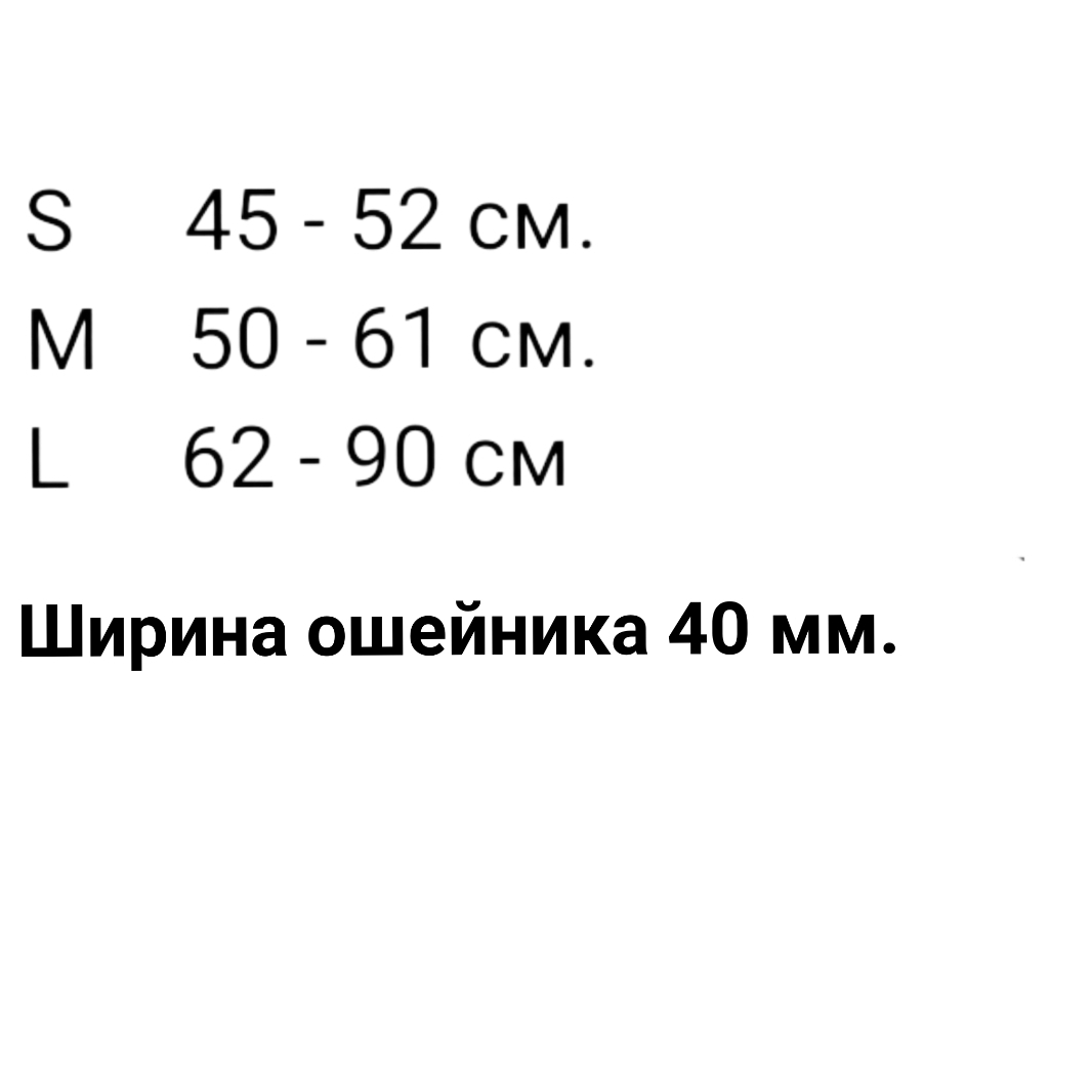 Ошейник выполнен из высокачественного нейлона, быстросëмный замок выполнен из пластика первого плавления и обладает особой прочностью. Система замка не позволяет осущосуществить само раскрытия. Кольцо стальное сварное. Ширна нейлоновой стропы 4 см.